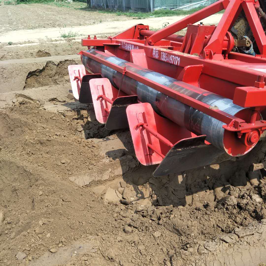 大型旋耕起壟機(jī)是由拖拉機(jī)動(dòng)力輸出軸驅(qū)動(dòng)的耕作機(jī)具,它是利用刀軸上刀片的旋轉(zhuǎn)和前進(jìn)的復(fù)合運(yùn)動(dòng),對(duì)未耕地或已犁耕地的田地進(jìn)行碎土作業(yè),其性能特點(diǎn)是碎土能力強(qiáng),一次旋耕達(dá)到一般犁耙?guī)状蔚男Ч?。既能適用農(nóng)田的旱耕或水耕,也能用于鹽堿地淺層耕作覆蓋,以抑制鹽份上升、滅茬除草、翻壓覆蓋綠肥、蔬菜田整地等作業(yè),已成為水、旱地機(jī)械化整地的主要配套農(nóng)機(jī)具。配上形壟器可用于起大壟作業(yè),用于起大壟形經(jīng)濟(jì)作物的栽培,成型好,是旱煙地的主要農(nóng)機(jī)具。